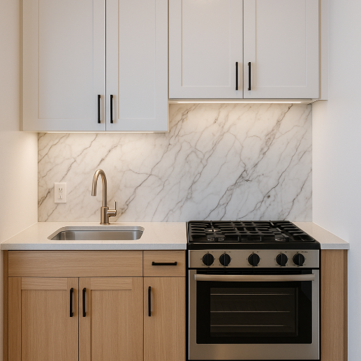 The other quiet benefit is psychological. The marble look reads elevated even when the rest of the room is doing its best on a budget. A single continuous panel behind a vanity or along a short backsplash can make the whole apartment feel like it leveled up. It’s the classic “one great coat” trick of interiors: give the eye something refined to rest on, and the room relaxes around it.